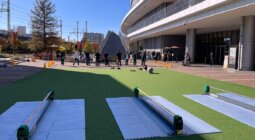 スラックラインの体験会として、お客様に実際にスラックラインに乗ってみて楽しんでいただくこともできますし