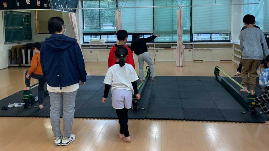 写真は体験教室前の写真になります。教室が始まる前からみなさん積極的にスラックラインに挑戦されており、熱心な方が多かったです。 途中宮下インストラクターとギボンジャパンライダー松本礼によるパフォーマンスを挟んで、みなさんにスラックラインの技をたくさん見てもらいました。 三島市のみなさま短い間でしたがどうもありがとうございました。